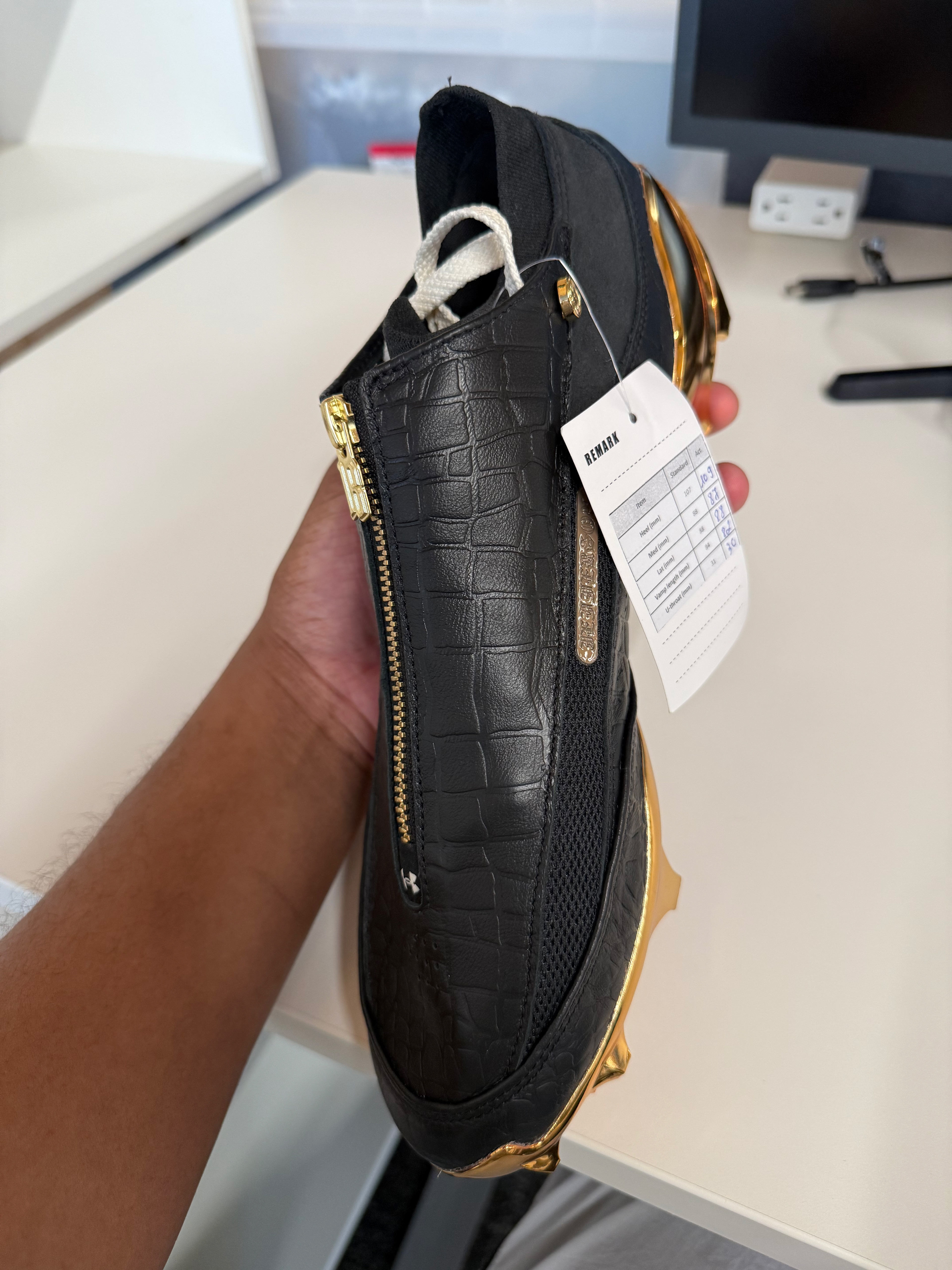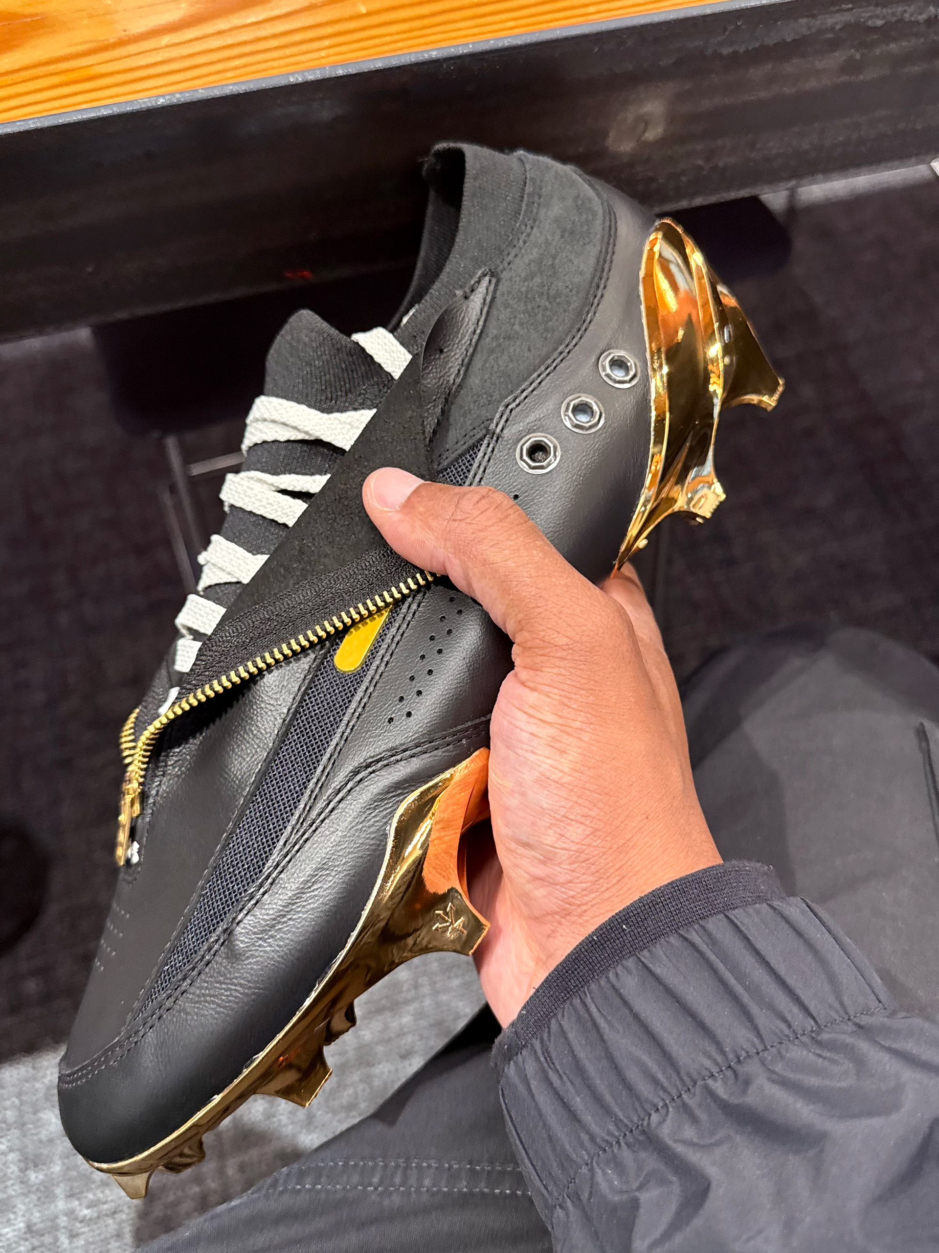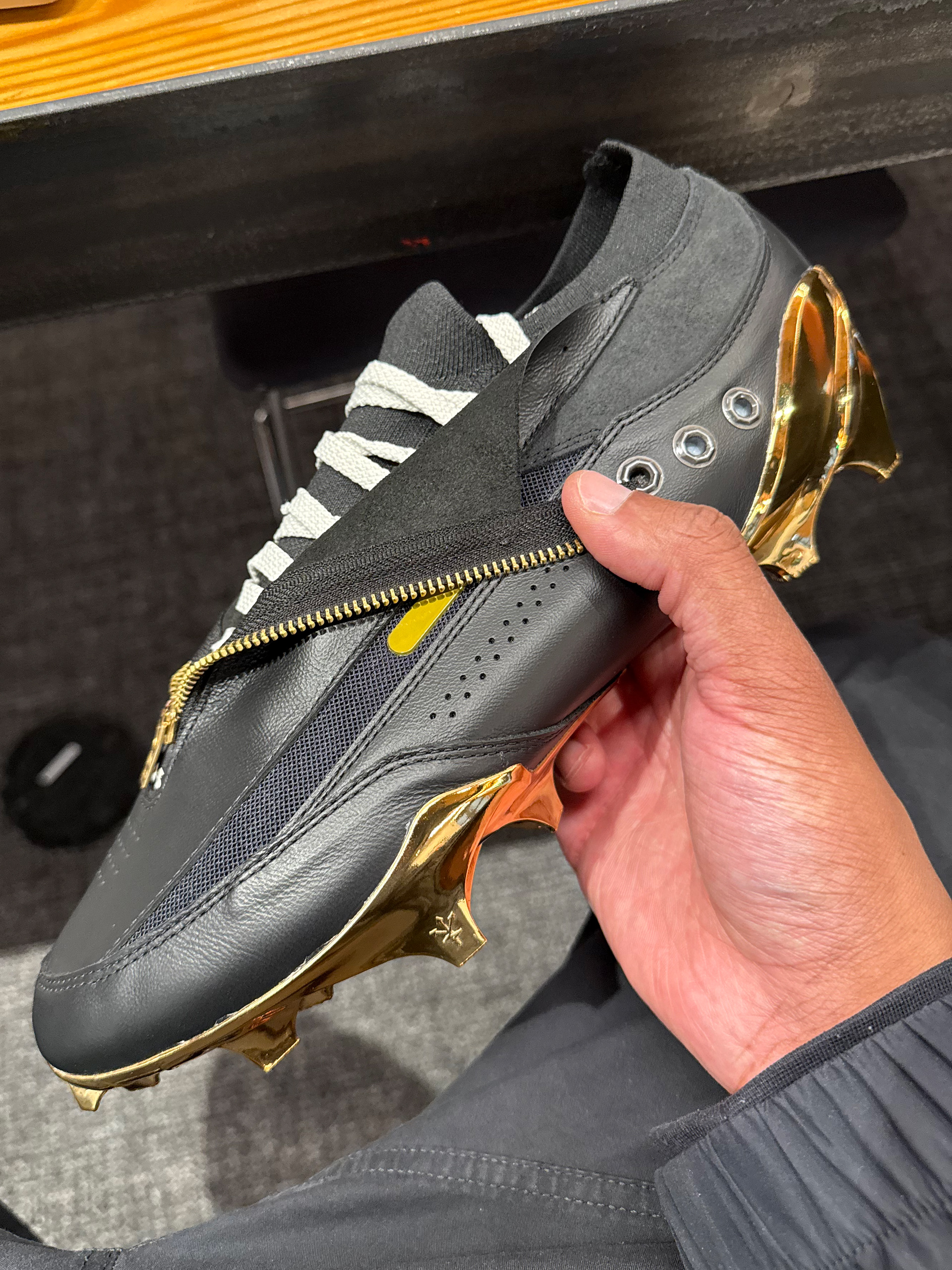Enhanced the design with custom-molded gold hardware, including a functional zipper and bespoke “JJ” metal buttons—reinforcing both the luxury influence and athlete-specific identity.