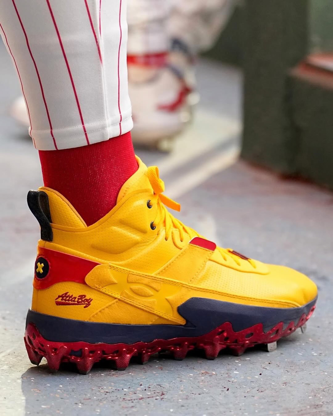 For the Atlanta Braves, incorporated the phrase “Atta Boy” as a direct nod to the 2023 NLDS moment involving Orlando Arcia—later reclaimed by Harper through his on-field response. Used this detail as a narrative device, transforming a in-game moment into a defining visual element.