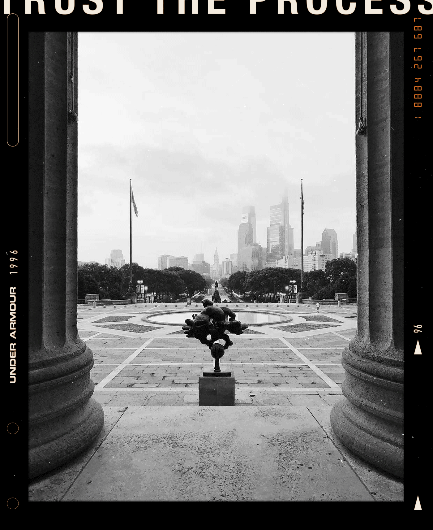 I had the opportunity to design a Tee for my hometown, and Joel Embiid. I used multiple images to recreate a basketball court in front of the entrance to the Philadelphia Art Museum, overlooking the city.