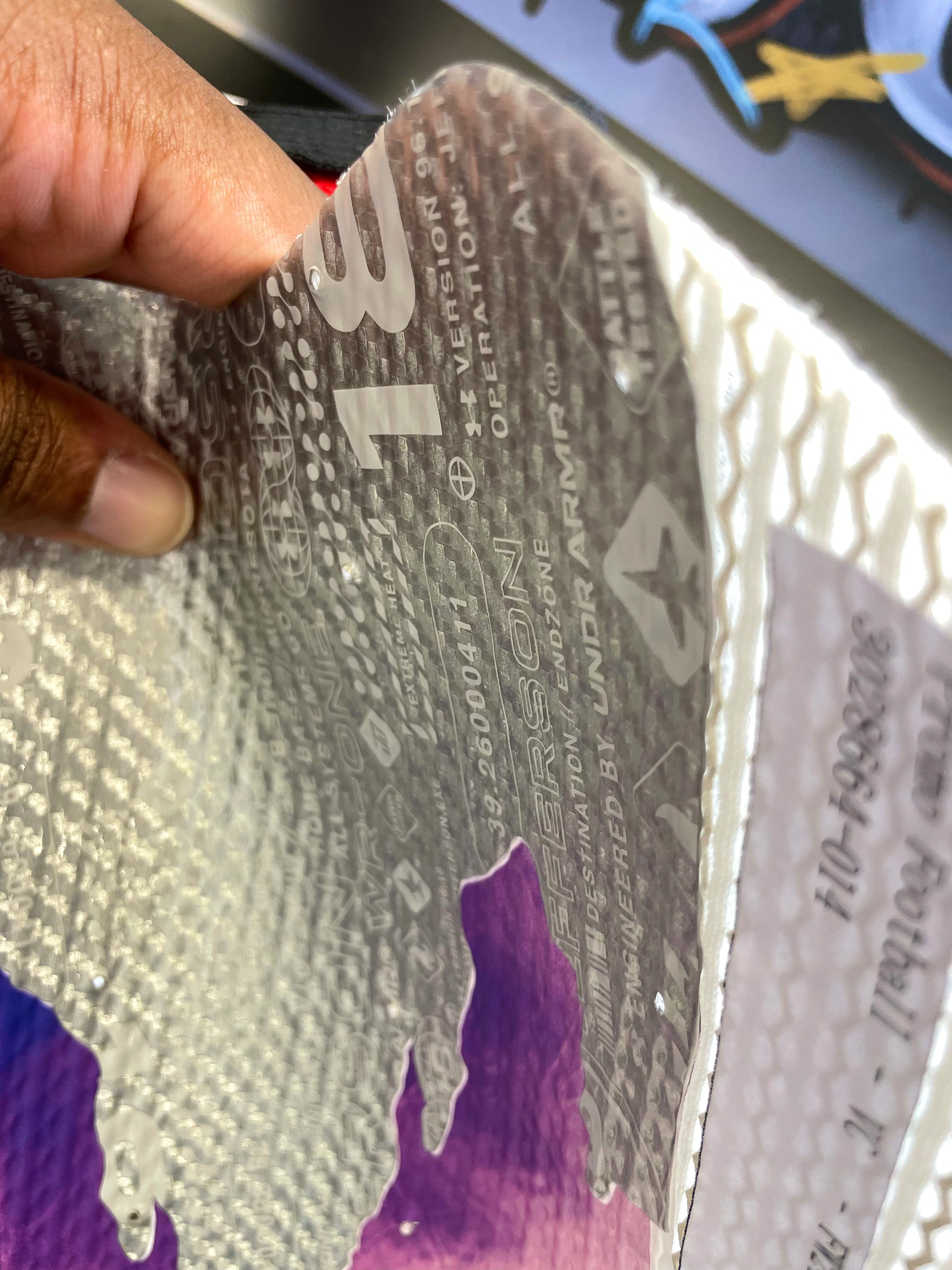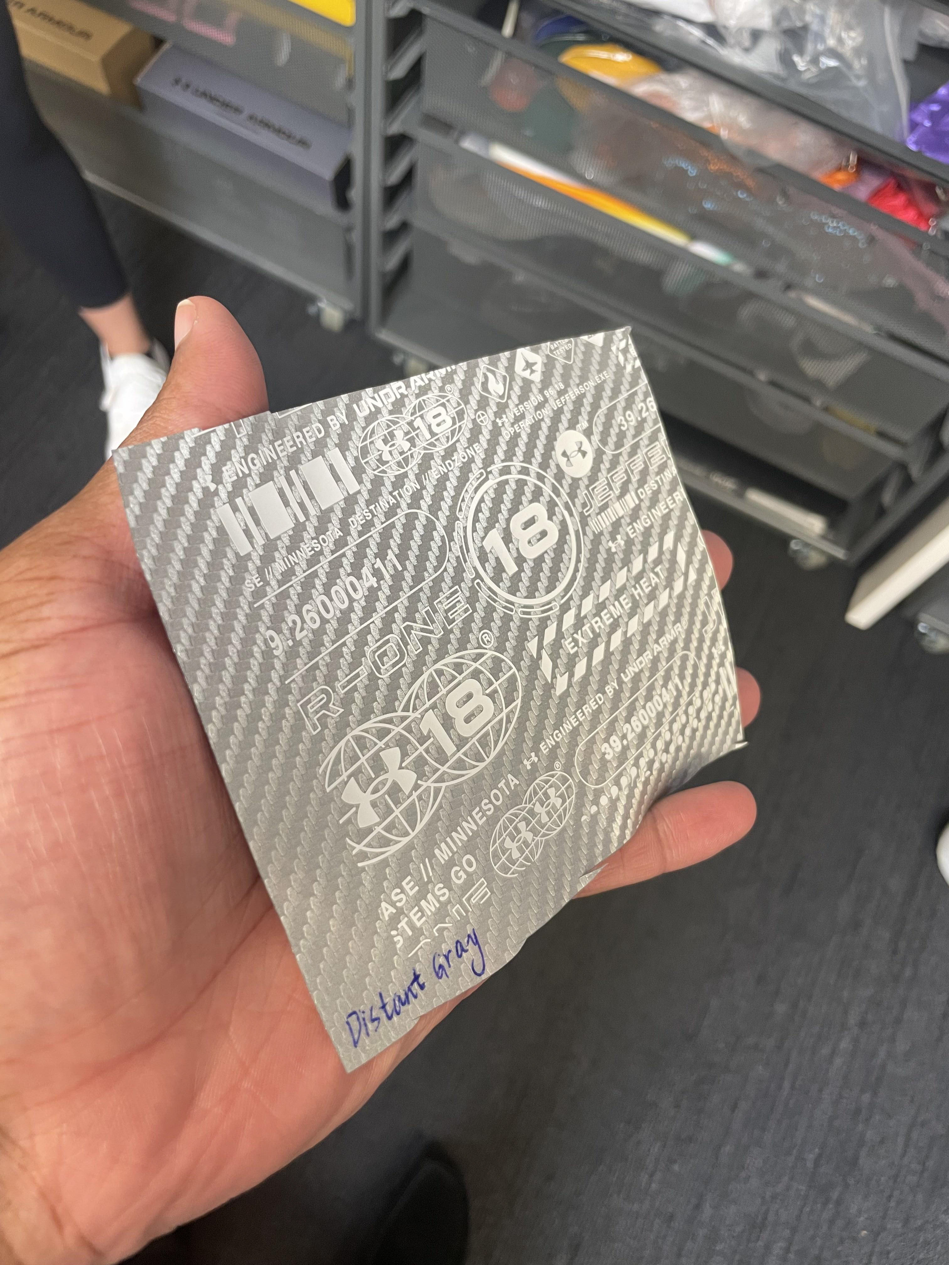 Started with a digital print capturing a close-up of an afterburner flame. Overlaid this with a chrome TPU film featuring a carbon fiber RP, cut away to simulate material being torn away. Added a tonal screen print of tech-driven graphics to reinforce the engineered, high-performance aesthetic.