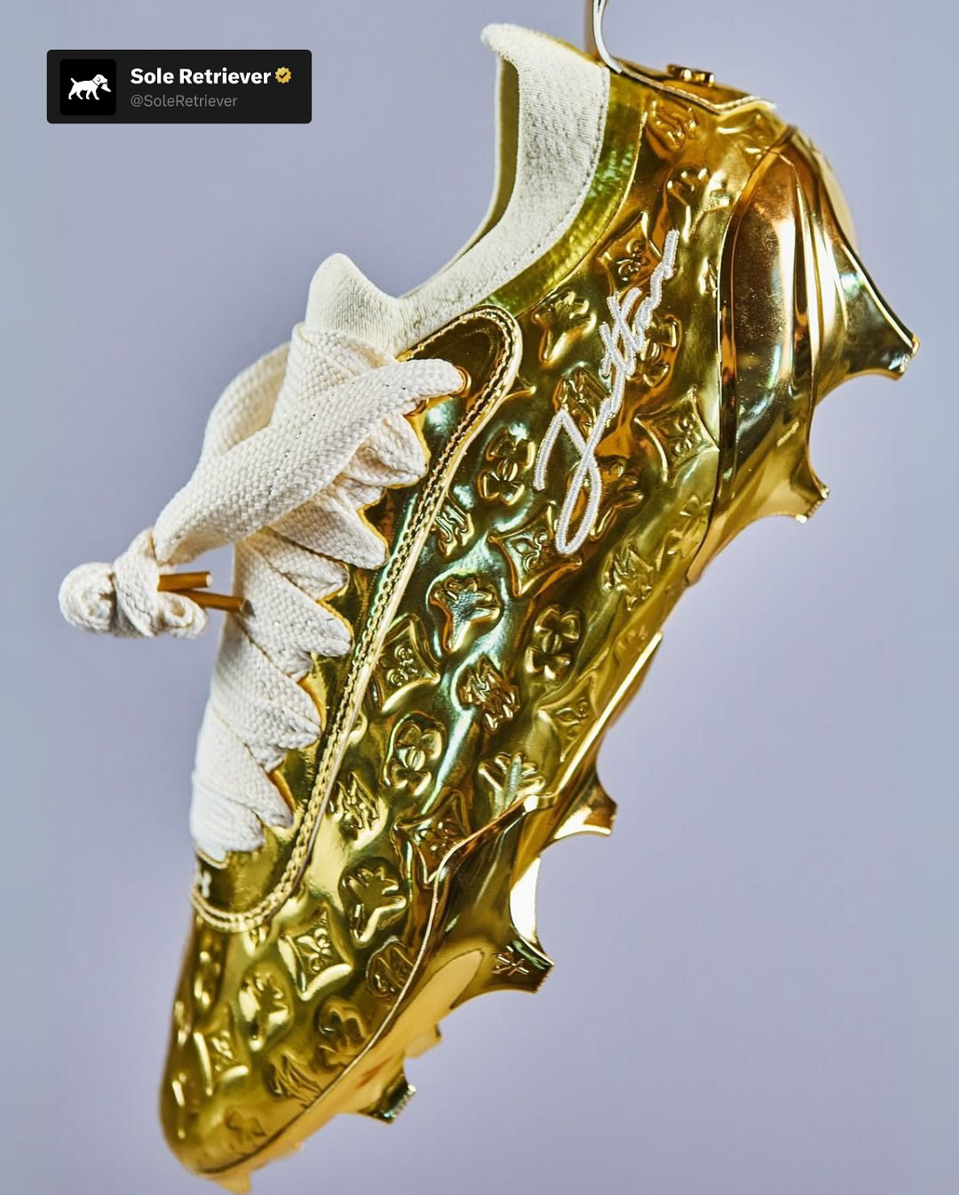 Identified an opportunity to extend an existing concept, “The Bag,” a chrome silver cleat with oversized laces, into a new expression tied to the 99 Club milestone. Leveraged available gold material stock to quickly translate the design into a gold version—avoiding the need for custom development and eliminating production delays.