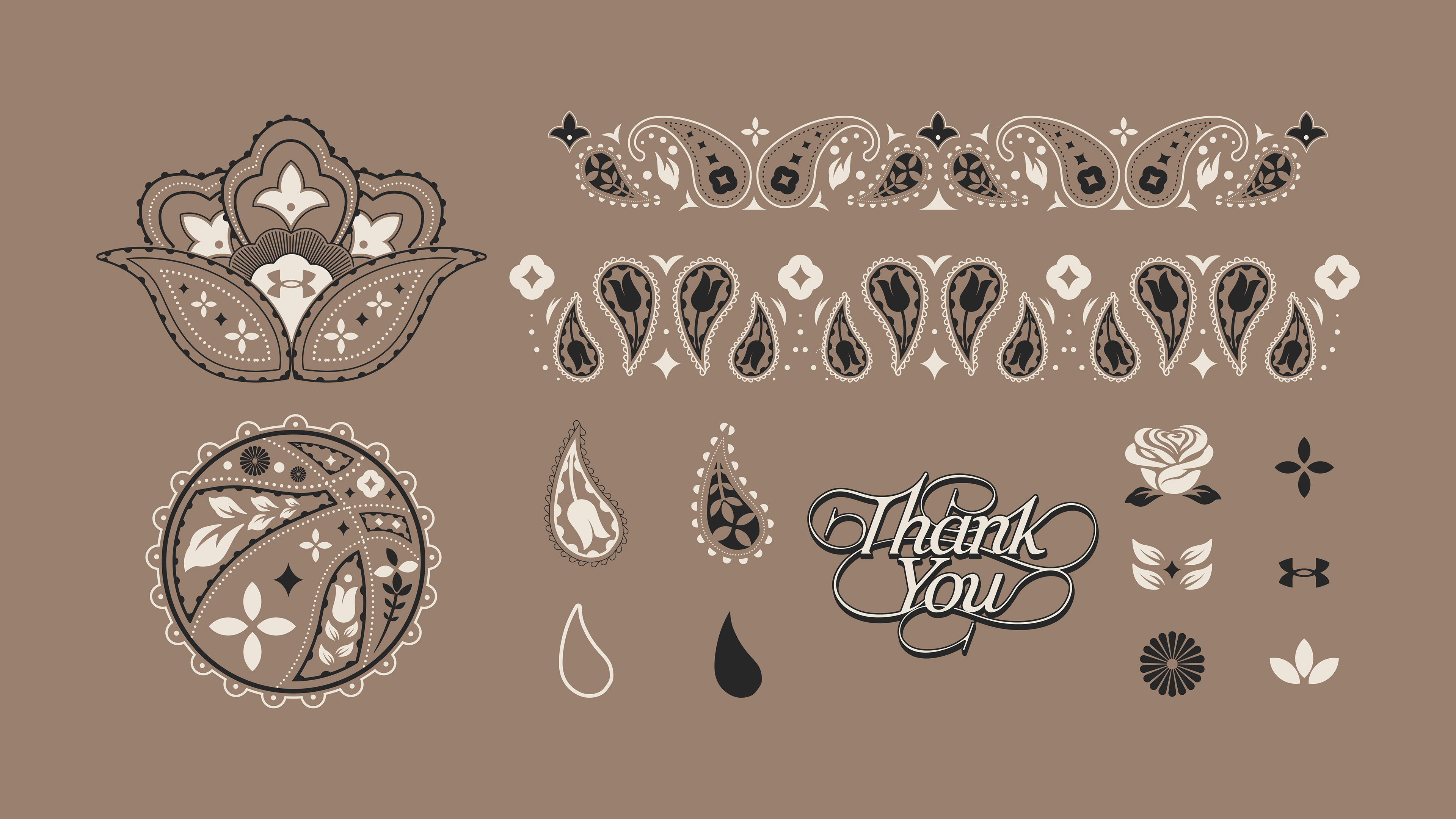 For the UA Breakthru, applied rose gold and pearlescent white panels to create a softer, more premium aesthetic, enhanced by screen-printed and debossed paisley detailing for added depth and texture. On the UA Slipspeed, adapted the execution to maintain the integrity of the upper by using a 3D rose gold screen print—preserving both dimension and performance.