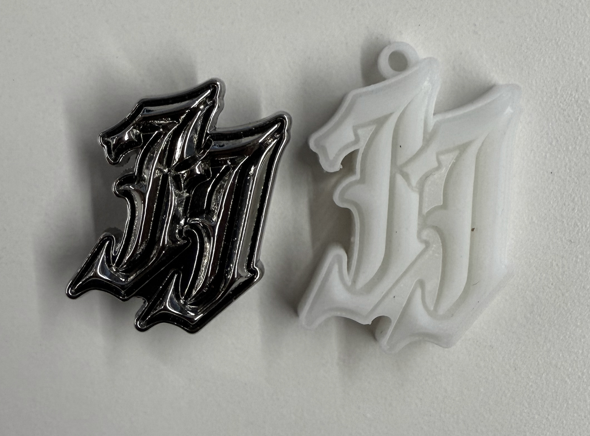 Retail Keychain and the 3D Printed sample.